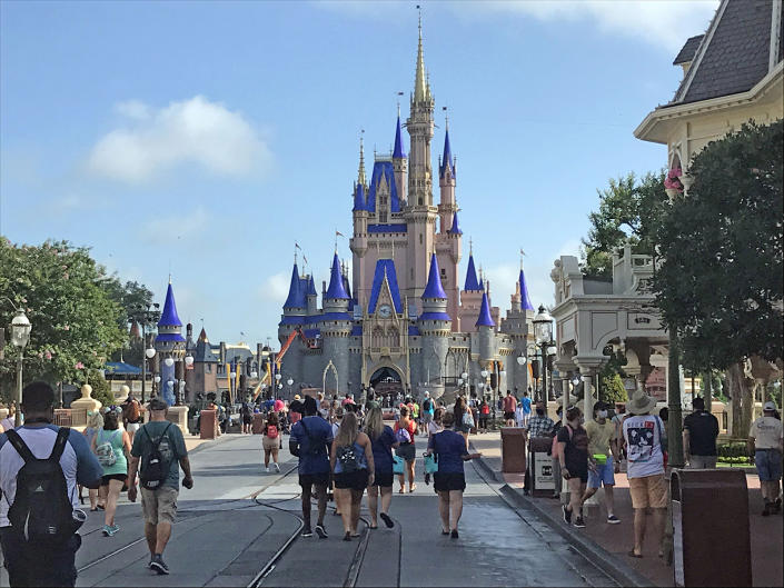 Disney annual passholders get a peek at the coronavirus-inspired changes inside the Magic Kingdom on July 9, 2020. (Gabrielle Russon/Orlando Sentinel/Tribune News Service via Getty Images)