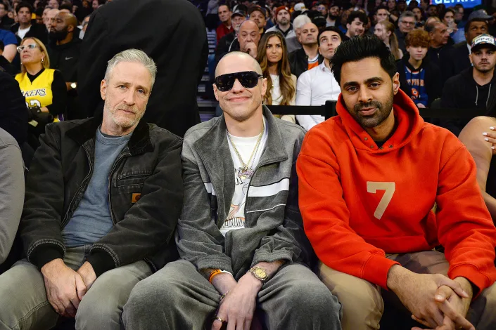 At a New York Knicks game Jan. 31, the comedian’s trademark thick locks had been shaven away to just a short cropped buzz cut as he sat courtside with comedians Jon Stewart and Hasan Minhaj. Davidson paired his shaven head with a grey outfit and black sunglasses.