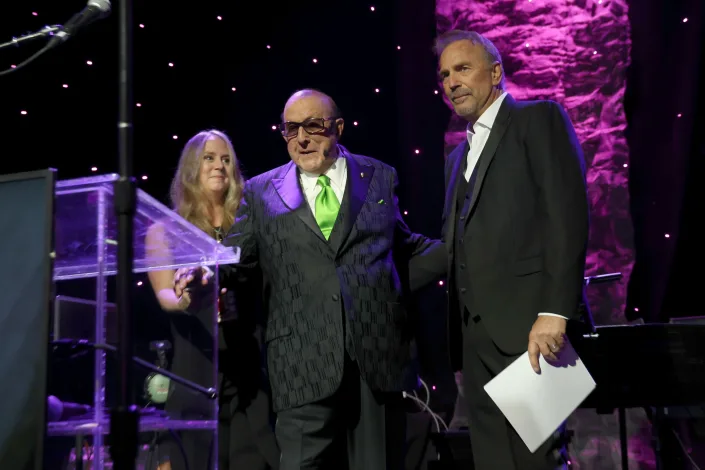 Costner went on to marvel about the “voice that came out of that little body that night in the studio” when Houston recorded her signature song from The Bodyguard, a cover of Dolly Parton’s “I Will Always Love You” — the biggest-selling single of all time by a female artist, and what Costner called the “performance of a lifetime.” But then Costner became noticeably choked up as he addressed his friend Davis directly: “Now, I want to say something that I’ve never said to you before. Maybe this isn’t the room for it, but I don’t want to miss the moment. And it’s from the heart. Neither one of us in the end could protect your beloved Whitney. But your fingerprints on her life are clean, my friend. You were a miracle in her life. Thank you for being her bodyguard, Clive, and for every person in this room that you stood behind and stood for. Everyone in this business has mom, but not everyone gets a Clive. So, you need to come up here. This is your stage.”